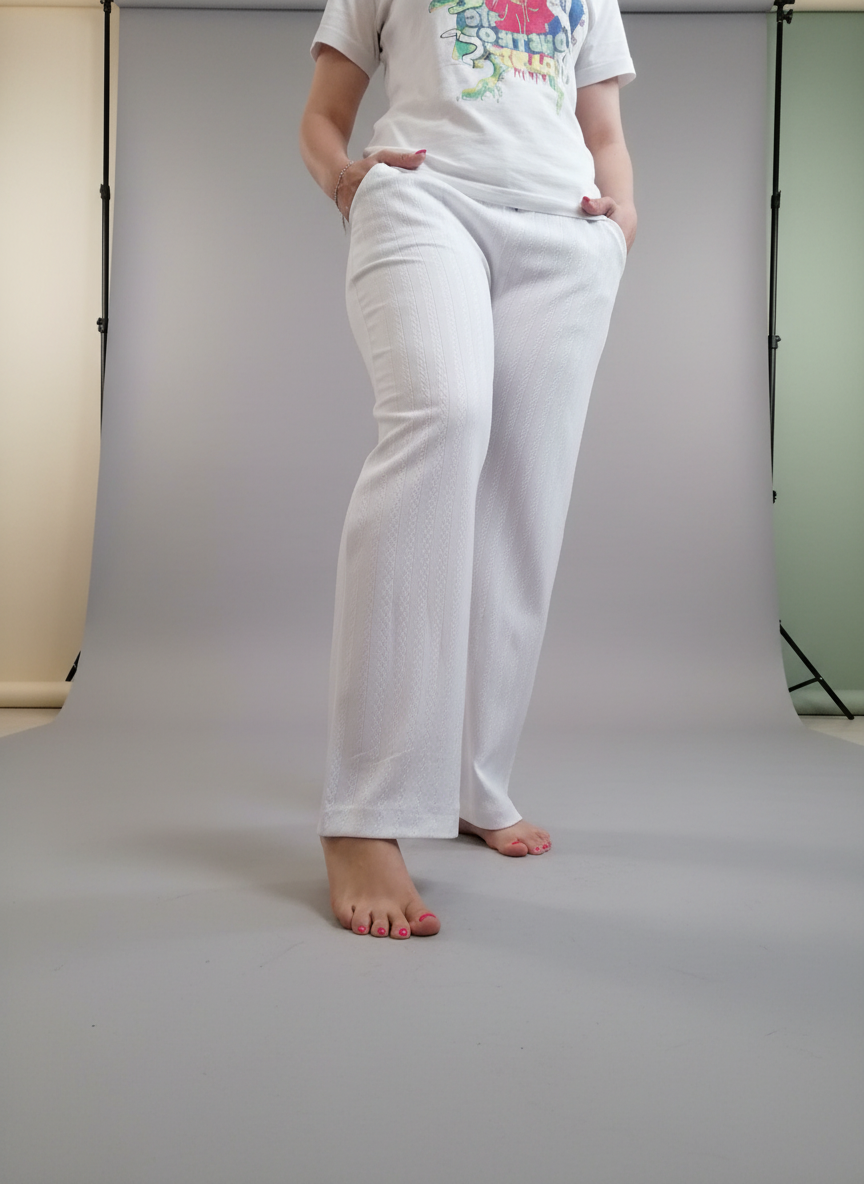 جزئیات: قد شلوار 98 سانت، کمر کش و دارای بند سایز شو، دارای دو عدد جیب کاربردی، سبک و خنک و راحت، مدل جناقی، کشی نخی، مناسب برای 36 تا 46 (فیت)