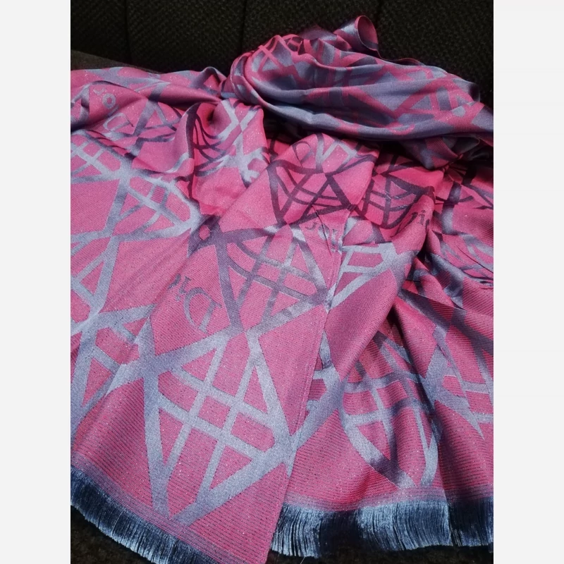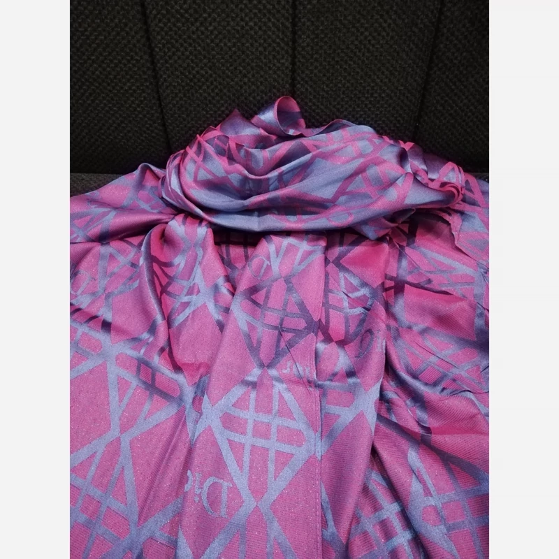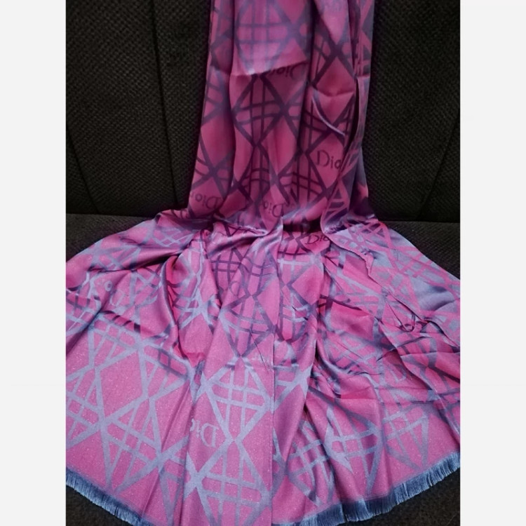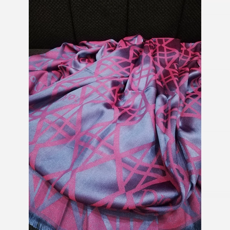 شال ژاکارد ابریشم، طرح دیور، دورنگ آبی و سرخ آبی، لیز نیست، بسیار با کیفیت، مجلسی. لبه پرزی بسیار خاص و زیبا