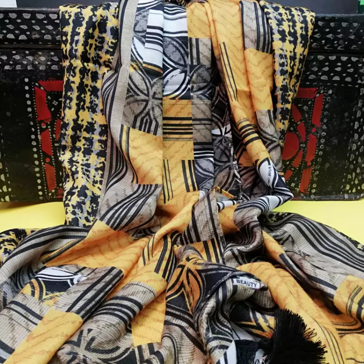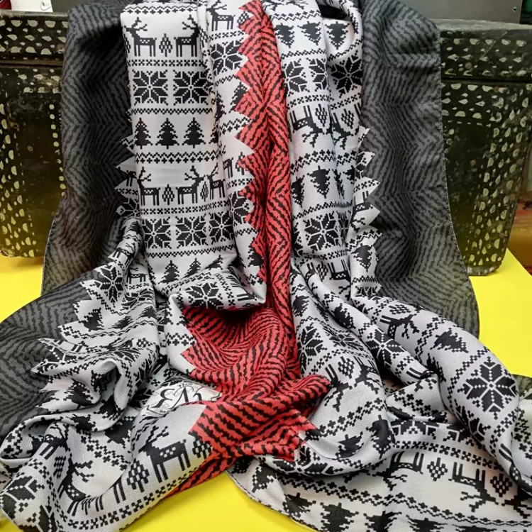 شال پاییزه. نخی. منگوله دار. ایستایی روی سر عالی 😍. لیز نیست....................
