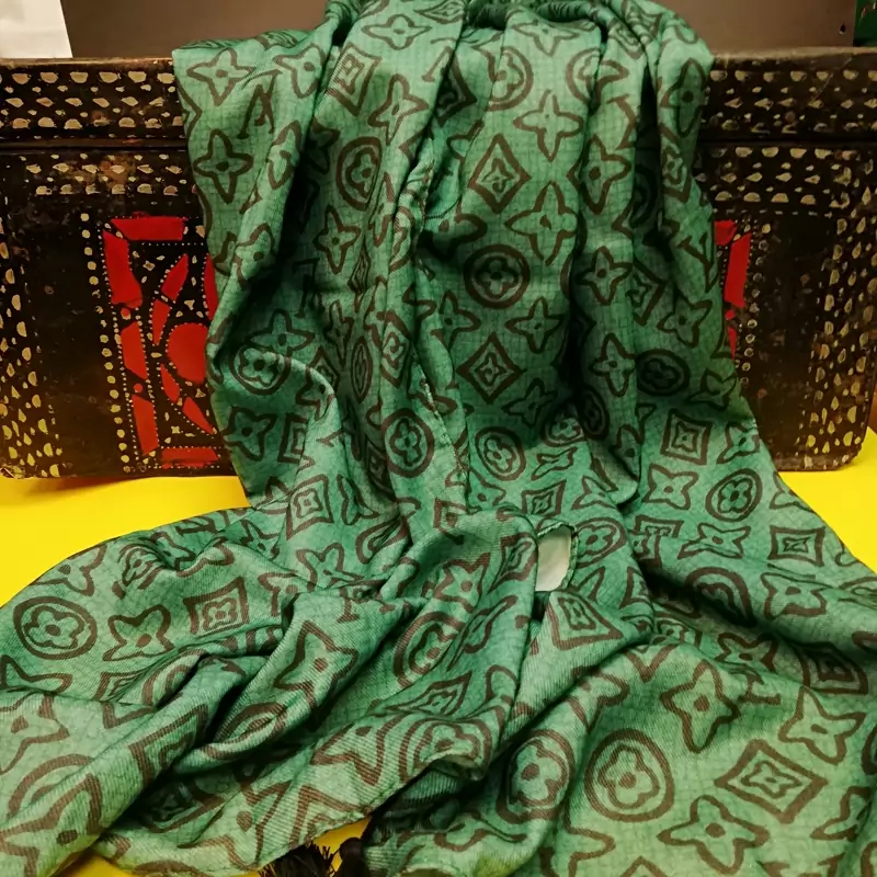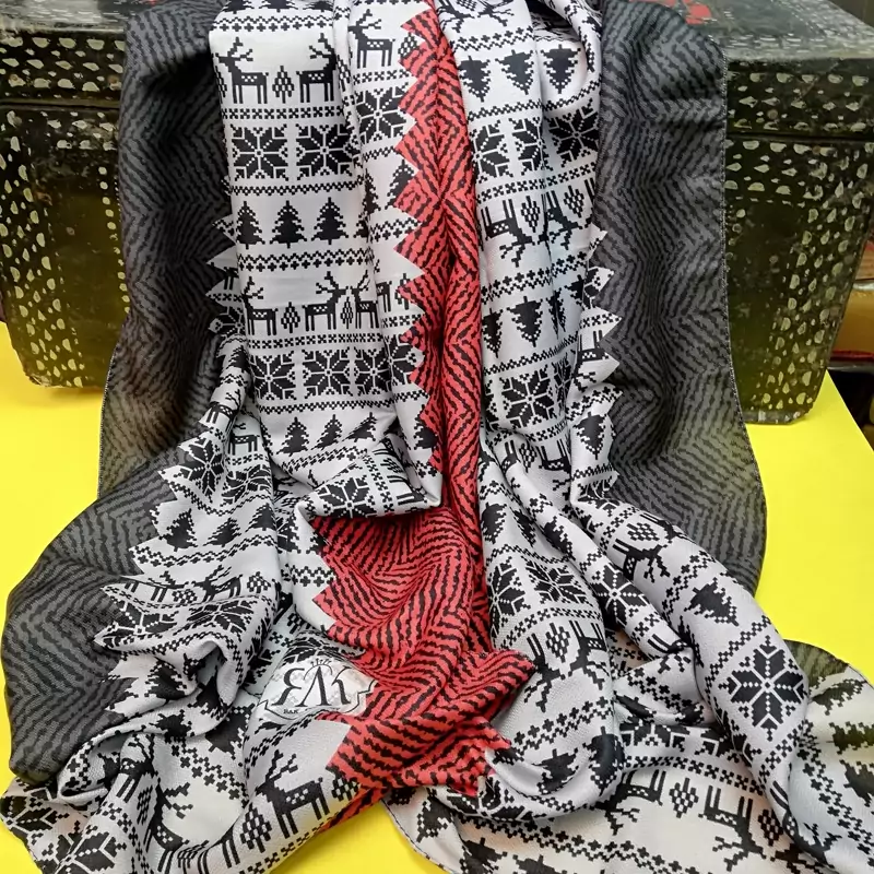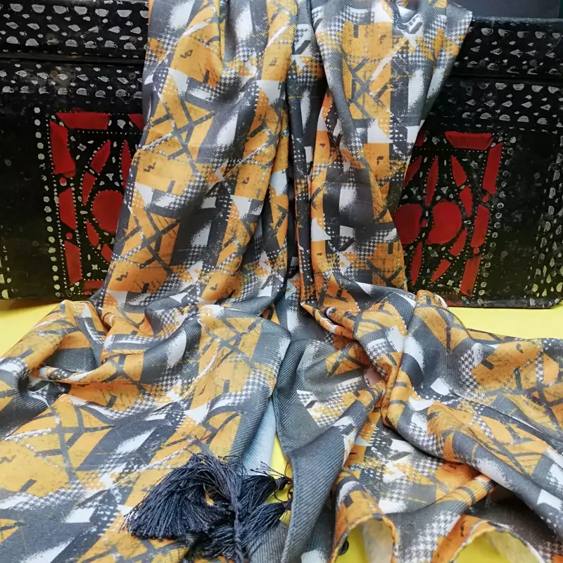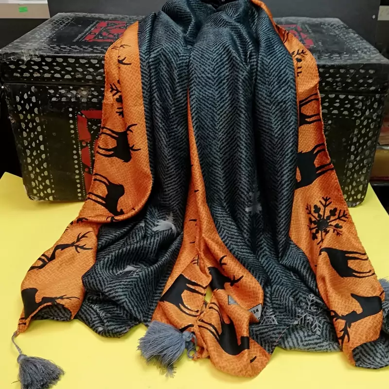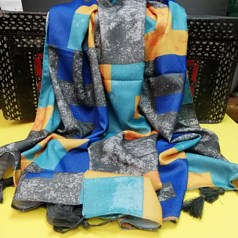 شال پاییزه. نخی. منگوله دار. ایستایی روی سر عالی 😍. لیز نیست....................
